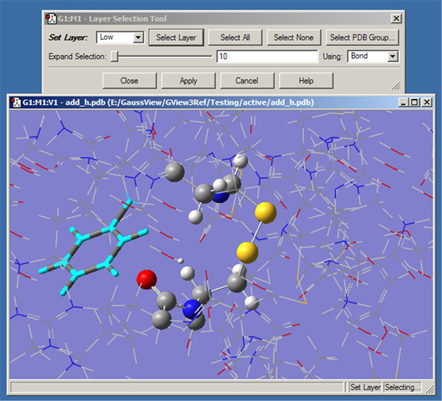 - Oniom:ONIOMレイヤー、レイヤーの境界、またはリンクアトムの原子を選択します