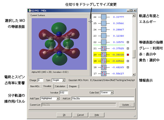 このポップアップメニューの他の項目は、Gaussianには適用されません。