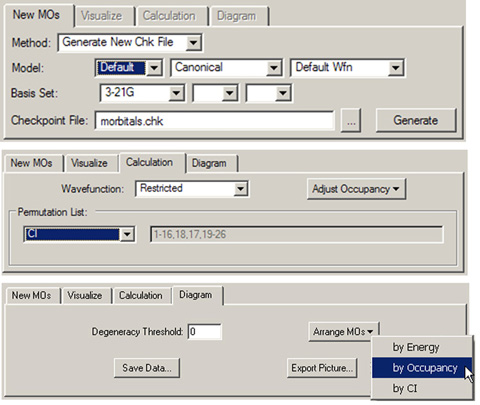 使用できる全ての冗長内部座標の形式は、Coordinate」パネルにある2つのポップアップ内のさまざまな選択肢によりサポートされています。またこれらのメニューにある項目の意味は一目瞭然です。座標タイプの設定に必要な追加の欄が、座標タイプを選択することで現れます。「Set Value」パネルにより、座標値の指定もしくは現在設定されている値を増やすことが出来ます。