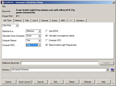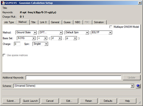 現状、計算スキームに関して2つの制限が有ります。一つ目は、Link 0コマンドが「Link 0」パネルの「Options」サブパネルに有る項目だけが適用されるという事です。二つ目は、カスタムした手法は指定できないという事です。