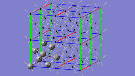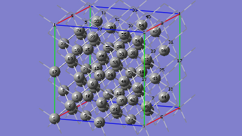 4-8 以上で、ダイヤモンド結晶の3次元PBCモデルの面心立方基本単位胞を設定できました。