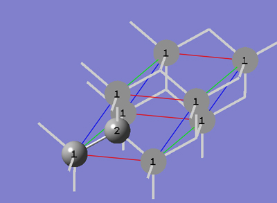 6-8 以上で、ダイヤモンド結晶の基本単位胞が作成できました。結晶構造は、最初の面心立方単位格子と同じになっています。