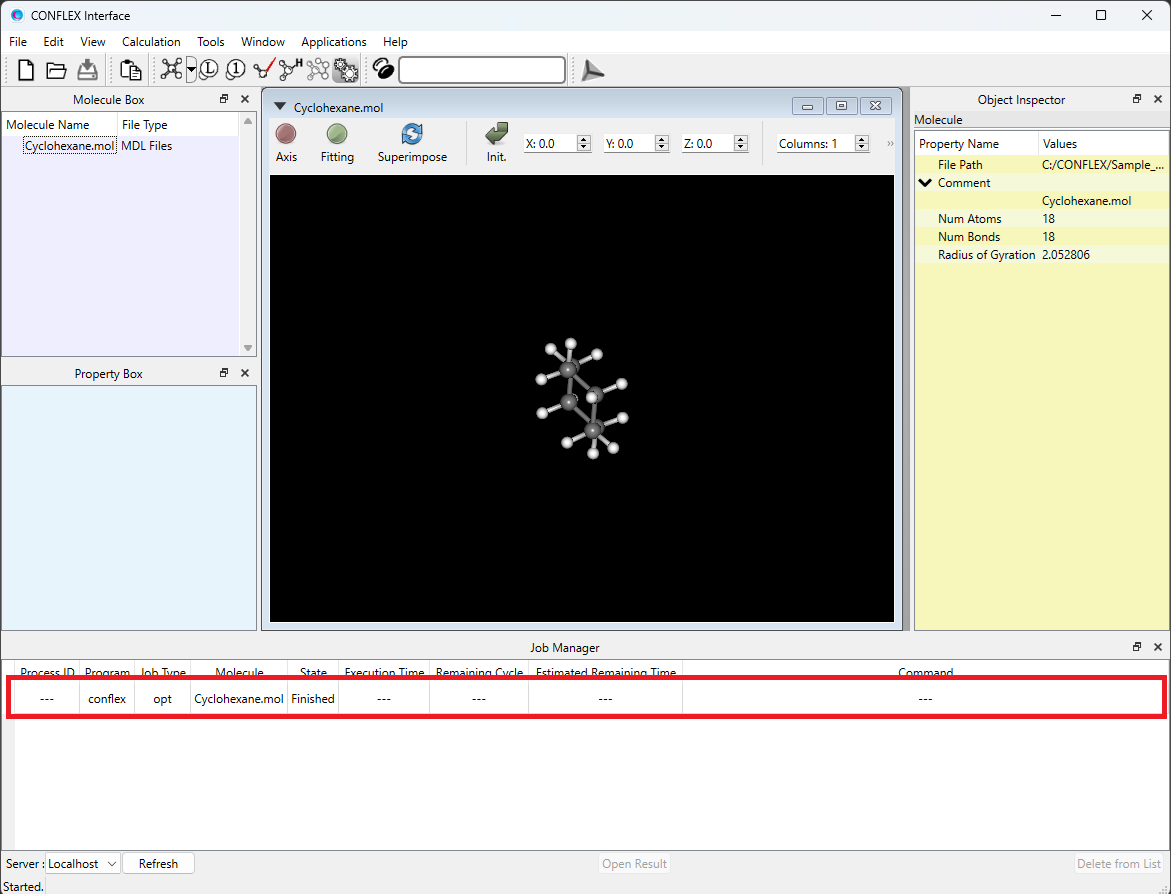 Open the Cyclohexane.mol file using CONFLEX Interface.