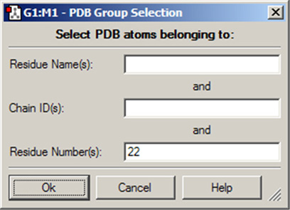 サブリストフィルターは、大きな分子を扱う際に、原子リストエディターで表示する行を扱いやすい数に制限する1つの方法です。原子リストエディターのRows => Sublist Filtersメニューを選択することで表示されるダイアログを用いて、これらのフィルターを定義できます(図27)。