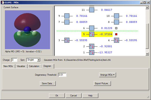 - Z-Matrix Connectivity Highlighting:強調表示された原子それぞれで、その原子のZ-マトリックスの項目(結合、結合角、2面角の定義)を決めるために用いている他の原子も強調表示します。