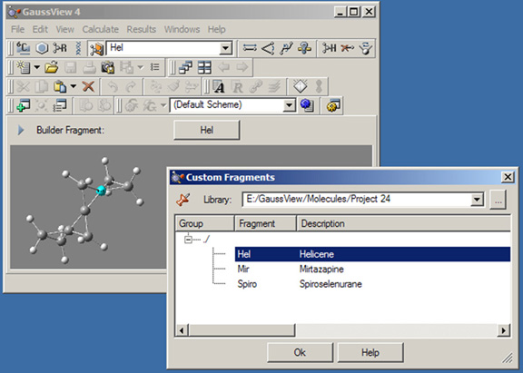- Automatically Select Hot Atom:この項目は「biological fragments」での使用を目的に作られたものです(デフォルト設定)。この設定によりGaussViewでは「hot atom」が動的に決められます。残基を追加するのにふさわしい主鎖の生成により、アミノ酸残基などを作成することが容易になります。