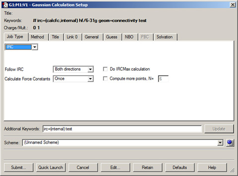 現状、計算スキームに関して2つの制限が有ります。一つ目は、Link 0コマンドが「Link 0」パネルの「Options」サブパネルに有る項目だけが適用されるという事です。二つ目は、カスタムした手法は指定できないという事です。