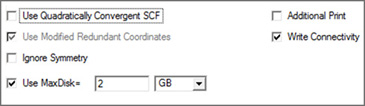 「Write Connectivity」オプションは、Gaussianの入力ファイルに適切な結合状態の項を追加します。