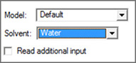いくつかの溶媒モデルでは、別の追加の欄への入力が必要になります。「Read additional input」を選択して、SCRF=Readオプションを設定することもできます。その場合、Gaussian入力ファイルを編集して追加入力を書き込む必要があります。