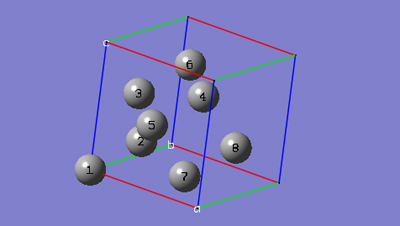 4-8 以上で、ダイヤモンド結晶の3次元PBCモデルの面心立方基本単位胞を設定できました。