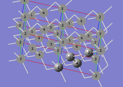 5-13 以上で、ダイヤモンドの面心立方単位格子が作成できました。結晶構造は、最初の基本単位胞と同じになっています。